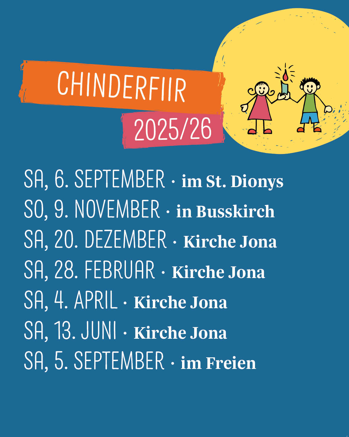 Die Feier beginnen wir normalerweise in der Kirche Maria Himmelfahrt Jona und lassen sie dann gemütlich im Kirchgemeindehaus bei Kaffee, Tee oder Sirup und etwas zum Knabbern ausklingen. Während die Grossen noch etwas plaudern, können die Kleinen am Kindertisch malen und zeichnen.